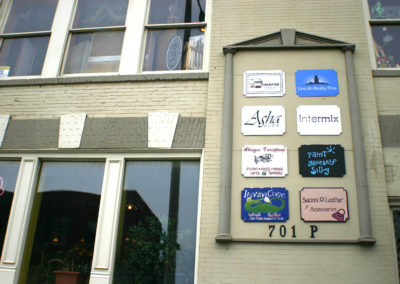 Originally constructed in 1890 as the two-story Fitzgerald Building, this structure received its upper floors in 1904—a very early example of a common Haymarket occurrence.  The building’s most prominent occupant was the Beatrice Creamery Company, which was headquartered here from the late 1890s until 1911.  William Henry Ferguson, one of the pioneering industrialists in Lincoln, was a major stockholder and officer in Beatrice Creamery.
